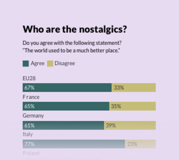 "Nostalgics place themselves more on the right of the political spectrum, while non-nostalgics place themselves more on the left."